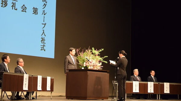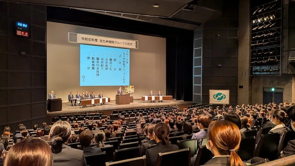 月1日、北九州病院グループの入社式を北九州芸術劇場の中劇場で行い、約200名の新入職員が会場に集いました。